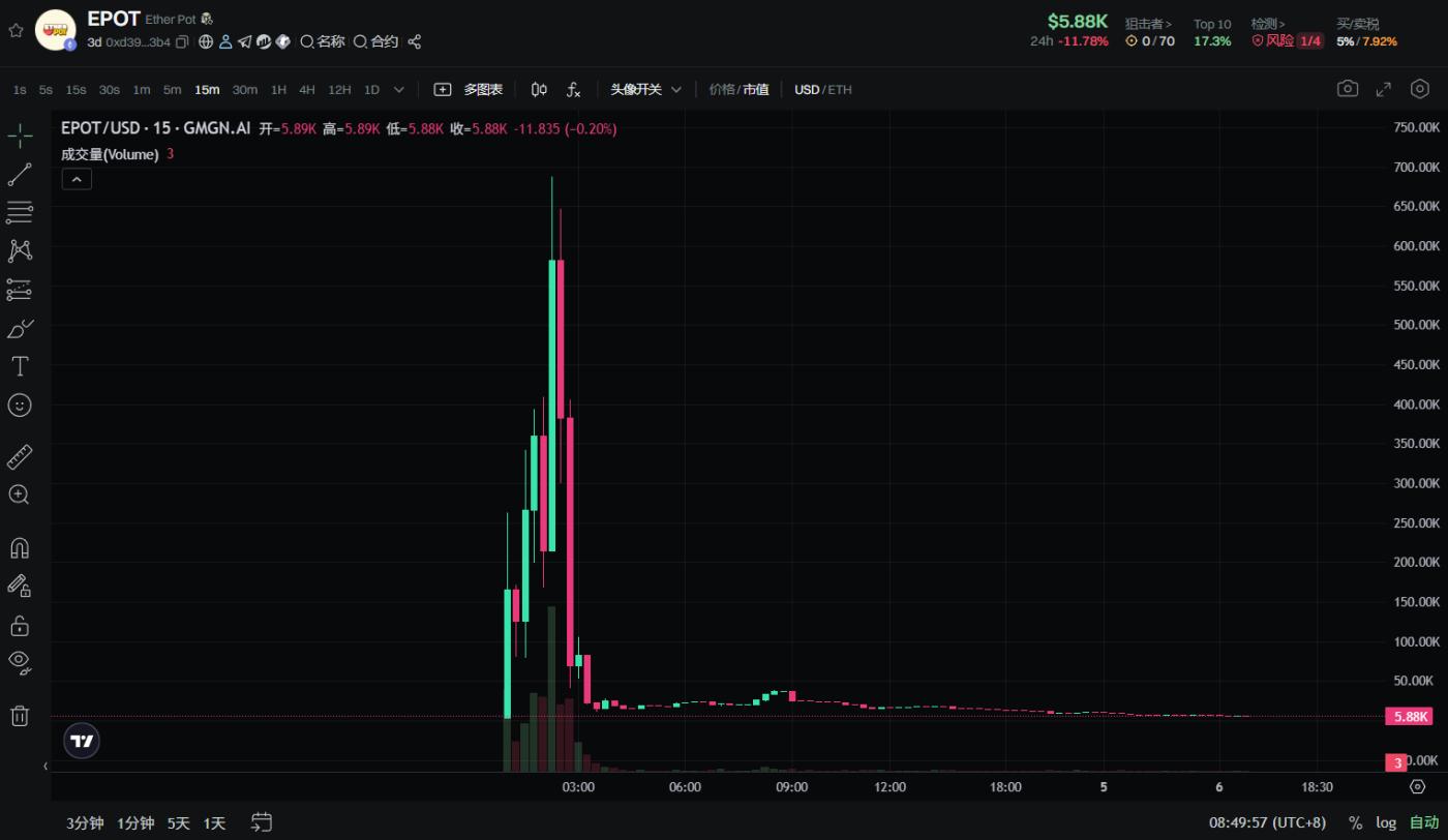 Ether pot(EPOT)为 ETH 上的仿盘,由于 ETH 链上 gas 较高,流动性较低所以情绪发酵较慢,所以该龙头出现的也较晚。
