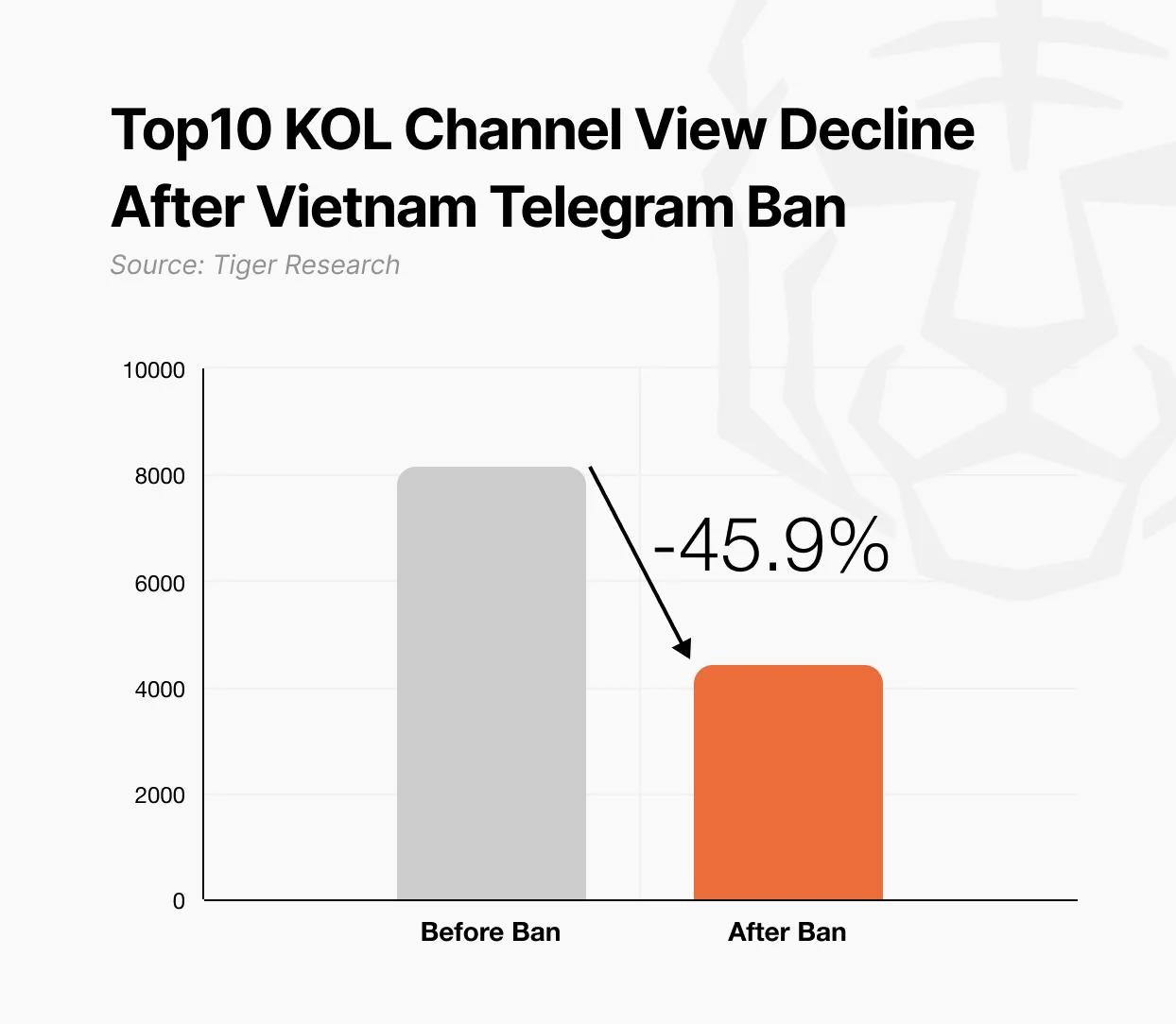 对于仅对加密货币有中等兴趣的普通用户来说,通过VPN访问Telegram被证明过于不便。因此,许多人完全退出了参与。在短短几天内,越南十大主要加密社区的平均浏览量下降了45%以上。