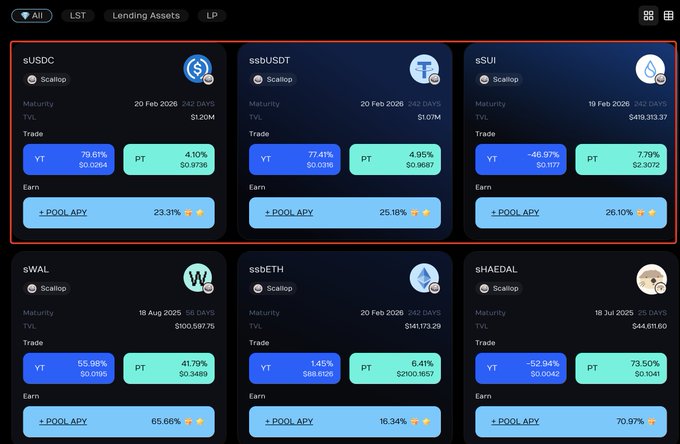 指定池:sUSDC(参考年化 23%)、ssbUSDT(参考年化 25%)、sSUI(参考年化 26%)