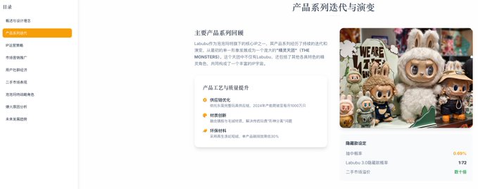 我看了一下字数居然有接近 1.9 万字,从目录看就能看到整个报告逻辑链条非常完整,涵盖了 IP 设计、产品演变、运营推广策略、粉丝经济等多个方面。