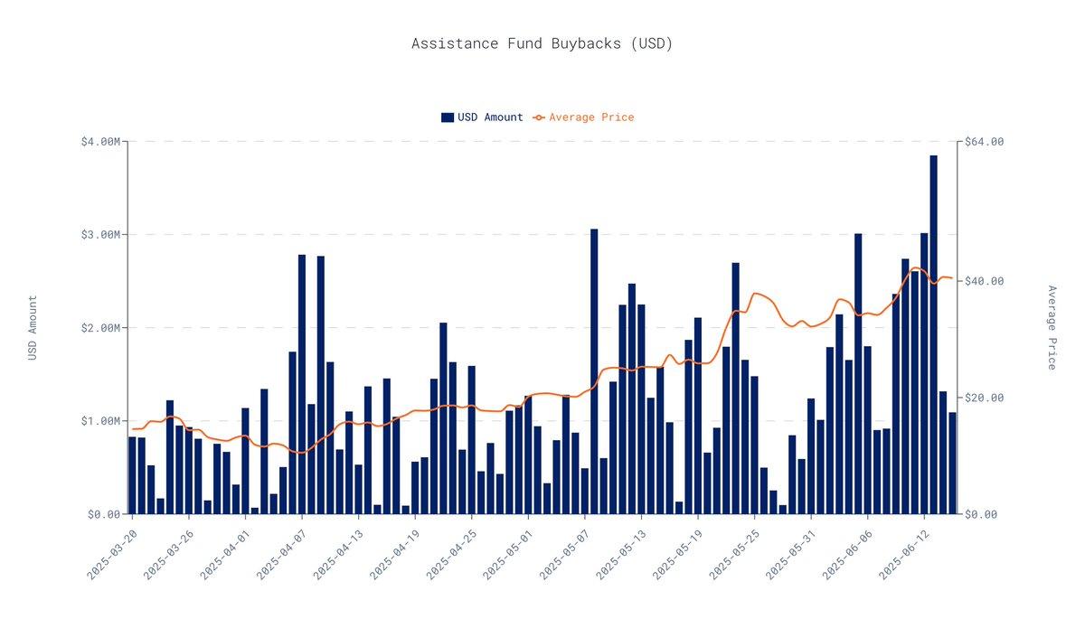 根据截至 2025 年 6 月 16 日的过去 30 天链上数据,Hyperliquid 协议的日均回购额为 163 万美元。按此推算,其季度回购总额约为 1.464 亿美元。