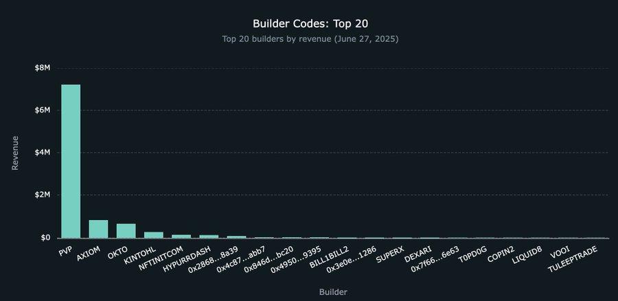 在这种模式下,平台无需再自建市场或拉动流动性启动新币种,而是通过 Hyperliquid 的现货部署和即将到来的 HIP-3 提案实现无许可上币,然后集成 Builder Code,构建最优界面与用户体验,即可像 Axiom 与 PvP Trade 一样创造可观收益。