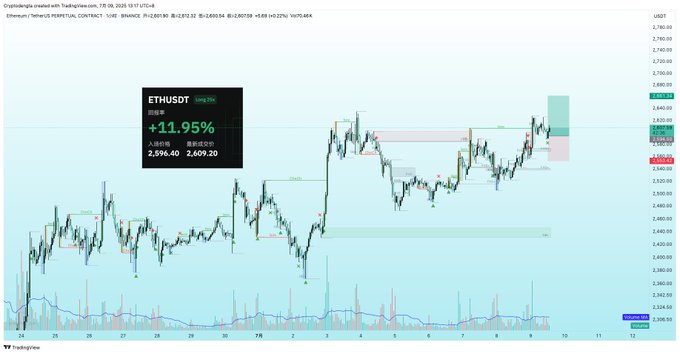 结构清晰,走势明显优于BTC,小时图级别若能站稳2600-2620,则有望挑战2650-2680区域,整体走势偏向于回调吸筹后的上涨阶段,具备突破前高的潜力