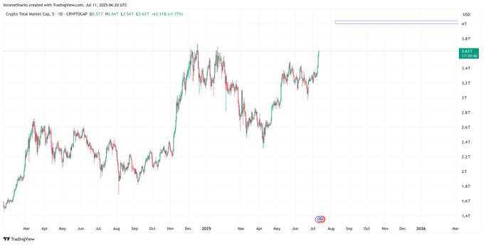 IncomeSharks07-11本文为机器翻译展示原文加密市场总市值为3.6万亿美元。 从某种角度看,英伟达的市值为4万亿美元。来自推特免责声明:以上内容仅为作者观点,不代表Followin的任何立场,不构成与Followin相关的任何投资建议。喜欢收藏 评论分享相关推荐深潮TechFlow靠钱包追踪,在 18 岁时用 50 美元赚到百万身家ROCKY4.44%鏈新聞川普称中共围台军演「已持续 20 年」不认为情势升高!预测市场:入侵机率仅 0.4%動區動趨Lighter平台币$LIT正式上线!空投规模高达6.75亿美元,某台湾高中生一单狂赚600万镁LIT2.31%