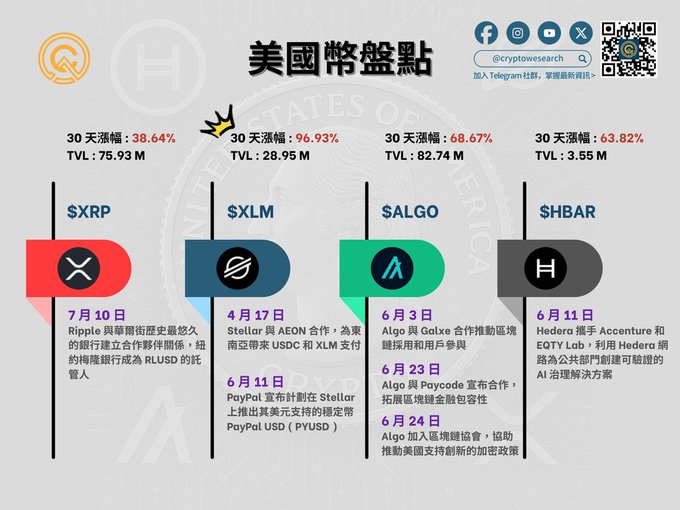 $XRP 、 $XLM 、 $ALGO 、 $HBAR 为何会称为美国币?