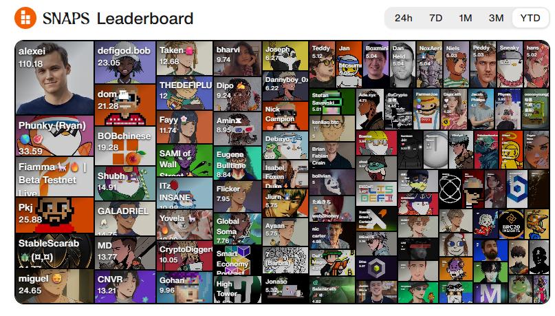 具体参与方式,有此前相似,首先在 Cookie.fun 平台注册账户,并多在 X 平台上发推文来介绍 Cookie DAO 与 BOB 来帮助项目获得更大的影响力,并建议撰写的推文带上 #BOB、#snaps 等标签以便平台更好追踪。根据平台数据,目前 BOB 的 Snaps 榜单中,排名第一为 BOB 项目联合创始人 alexei,上线不到一日已有 110.18 积分,上榜的第 100 名仅有 1.62 积分。