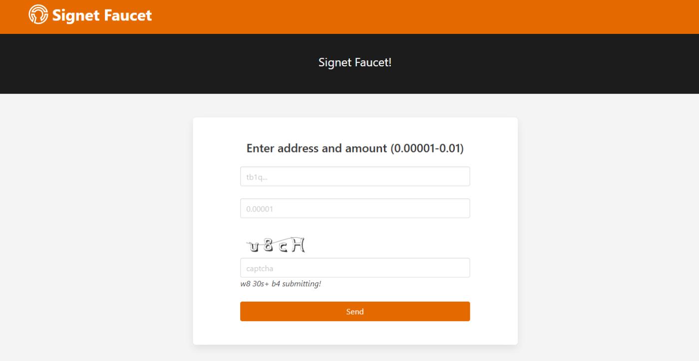 STEP 2. 领取测试币(链接:https://signetfaucet.com/ 或 https://signet257.bublina.eu.org/)。