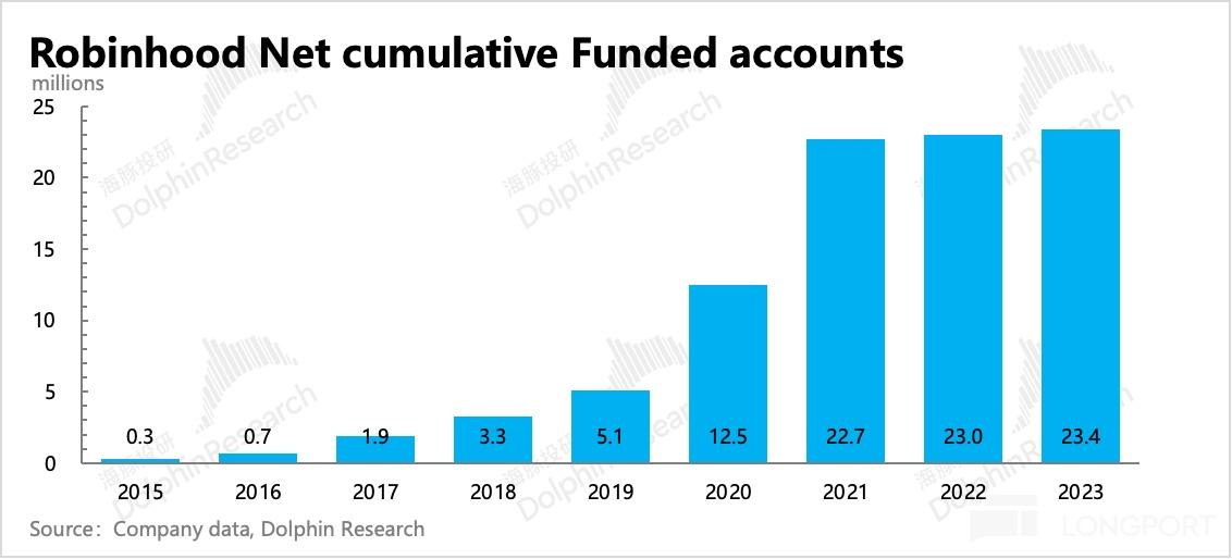 2015 至 2021 年,Robinhood 平台注册用户数量增长达到 75% 。