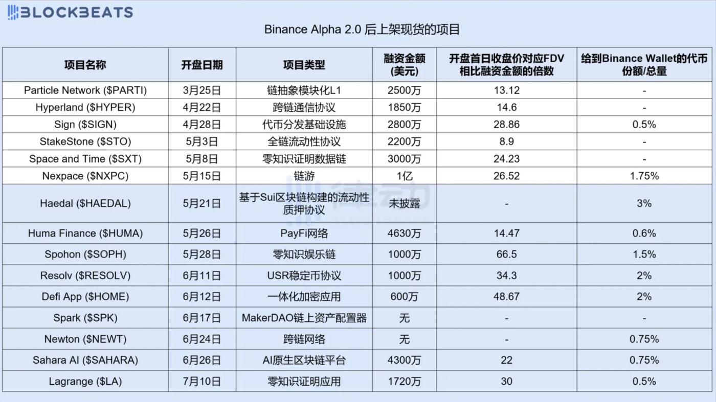最初的 Binance Alpha 是上架 Binance 现货的「前哨站」,但在今年的 3 月 Binance 宣布升级到 Binance Alpha 2.0 后,项目在 Binance Alpha 被列出和被上架现货之间的关联性就变弱了许多。