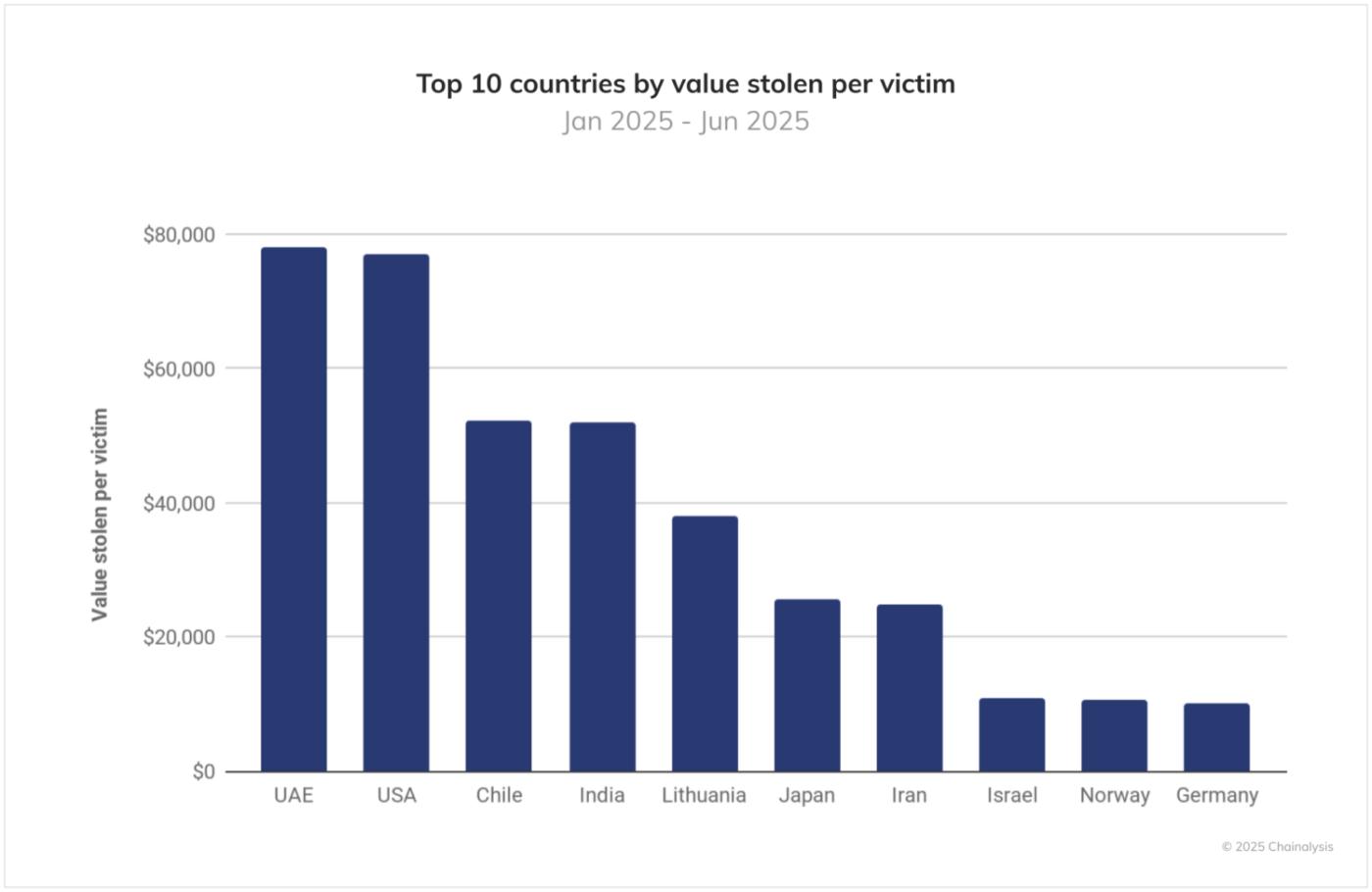 2025年的分析显示,各国人均网络盗窃金额存在显著差异。美国、日本和德国继续位居前列,但阿联酋、智利、印度、立陶宛、伊朗、以色列和挪威等新国家也加入了这一行列,凸显了全球网络盗窃的严重性。