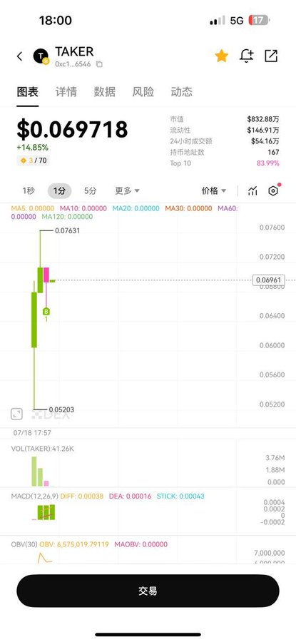 瞬间用 @okxchinese 开启狙击模式,在0.06买了5000刀 $TAKER 。如图一