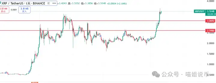XRP 最近挺稳,死守 3.40镁上方支撑位,图形呈现典型的“看涨旗形”。金叉、放量、OBV 多头信号齐出,虽然短线可能震荡一下,但只要不失守 3.12,美术馆般的图形暗示下一站是 4.16 镁。市场情绪偏乐观,就看啥时候突破。