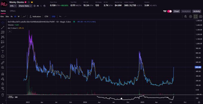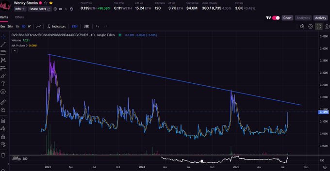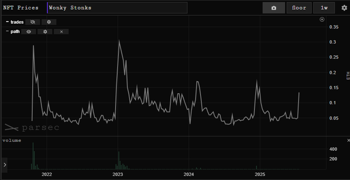 很酷的是能够缩小并查看Wonky Stonks在ETH和镁中的图表。