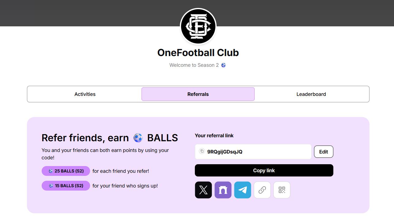 STEP 3. 在 Referrals 栏目中,通过邀请好友获得额外 BALLS 积分奖励。