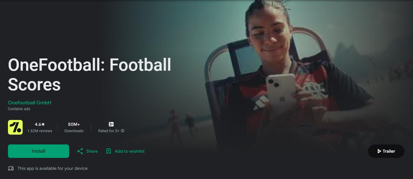 OneFootball 平台拥有极其庞大的用户群体。根据 Google Play 数据,OneFootball 下载总量超 5000 万,评论数高达 162 万。