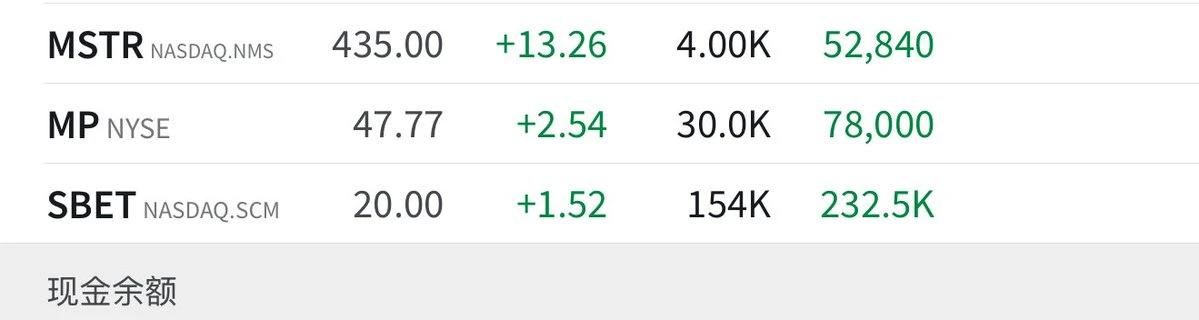 7 月 9 日,SBET 价格回升到 15.35 美元左右, 24 小时涨幅超 21% ,川沐发文表示:「今天想到一个可能有意思的,以前太偏见了。eth 的微策略相比 btc 可能融资更有优势,因为质押得来的 eth 可以支付利息。能支撑更高利息的融资,源源不断的融资也不怕付不起利息。sbet 有可能有非常大的想象力,以前偏见了。」随后,其发文表示,以 15.3 美元均价再次入场 SBET;后续,其再次以 17.1 美元的均价购入 40000 股 SBET。