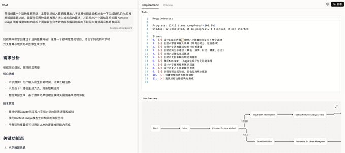 在你输入提示词之后他会先进行需求分析,然后询问你一些需要补充的细节,在你确认之后就开始生成了。