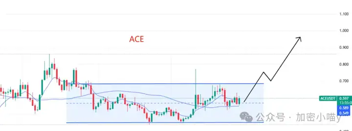 📌#ACE:还在横盘震荡,但资金在慢慢进场,踩在9EMA和50SMA上方,等个放量突破就可能直奔1刀。