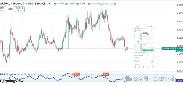 还有 #VIRTUAL,我已经提前上车。这币很明确:4小时图底背离明显,是#AI板块 的潜力股之一,底部震荡时间也够长,明显有强庄。只要整个AI板块动一下,它大概率就是第一个冲出去的。