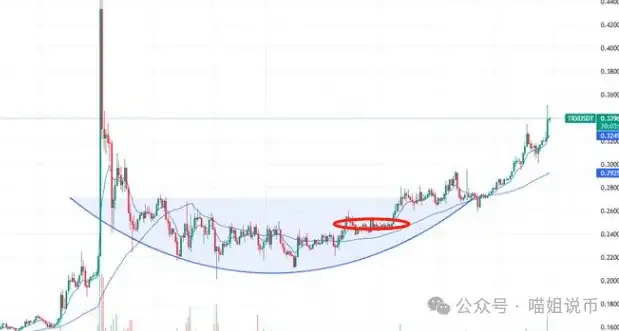 #TRX:突破水平线+弯曲趋势线的回踩完美守住,走势验证圆底结构,强势延续中。下轮反弹可能刚开始。