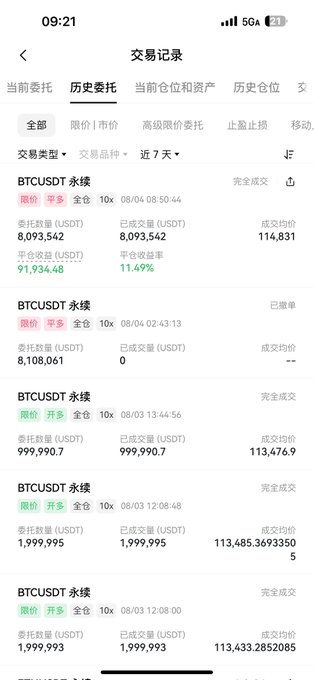 行情还是当成震荡来做,本打算先在OKX自己体验下带单和页面,玩着玩着把3000w都转进带单里了,等回来减到500w再带吧,也比较好操作。 昨天ETH平的早,把仓位加到BTC上,盈利就止盈吧,也没多大波动,有点儿累了,休息两天去玩一玩。