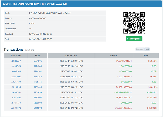 - 用户已将全部$DOGE提取到另一个钱包地址(可能是交易所)。