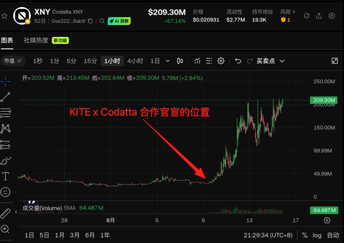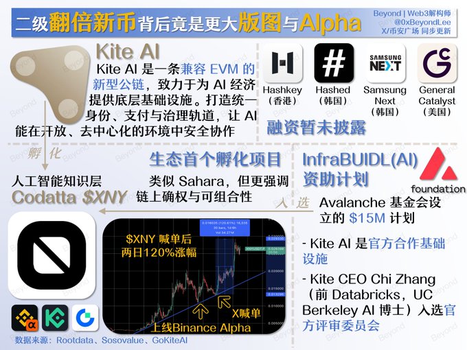 因此结论性的表述是,在 $XNY 的行情背后,其实是整个 Kite AI 生态正在开启的 Alpha,时刻留意下一个短期价格翻倍的潜在标的