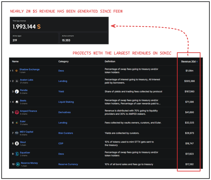 + @ShadowOnSonic - 作为原生去中心化交易所,有望成为 Sonic 的 DeFi 核心,过去 30 天已产生 138 万刀的手续费。