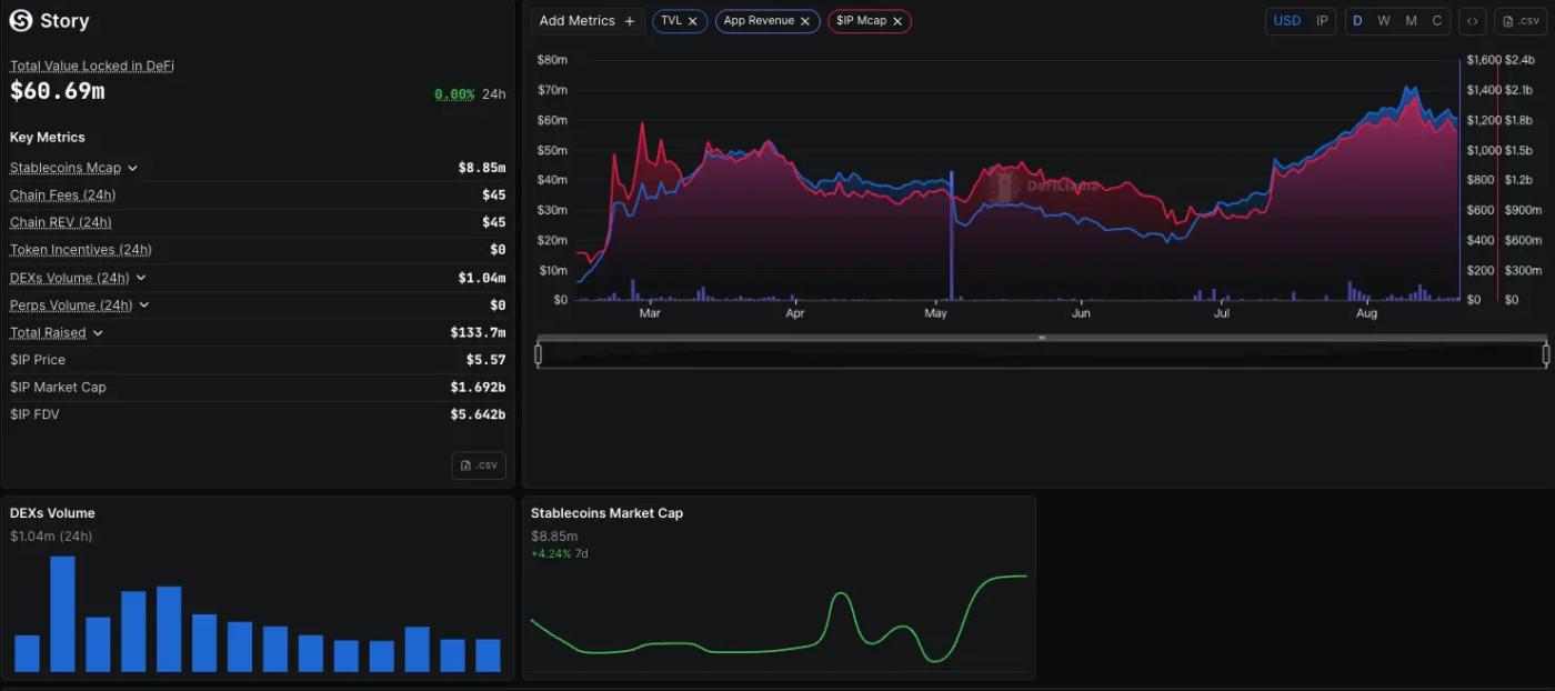 但让链上与实体链接这一「应用型」产品,虽然叙事宏大但似乎与当前的 Crypto 还向性不合,在 TGE 后的半年时间内,他们与 Justin Bieber、BTS、BlackPink、Adidas、Crocs 等知名的品牌合作但这也改变不了 Story 链上的营收大部分时间都是个位数或两位数的事实,知名风投分析师 Adam Cochran 指出,近 60 亿美元完全稀释估值对比这个营收,他质疑项目是否更注重「花式演示」。