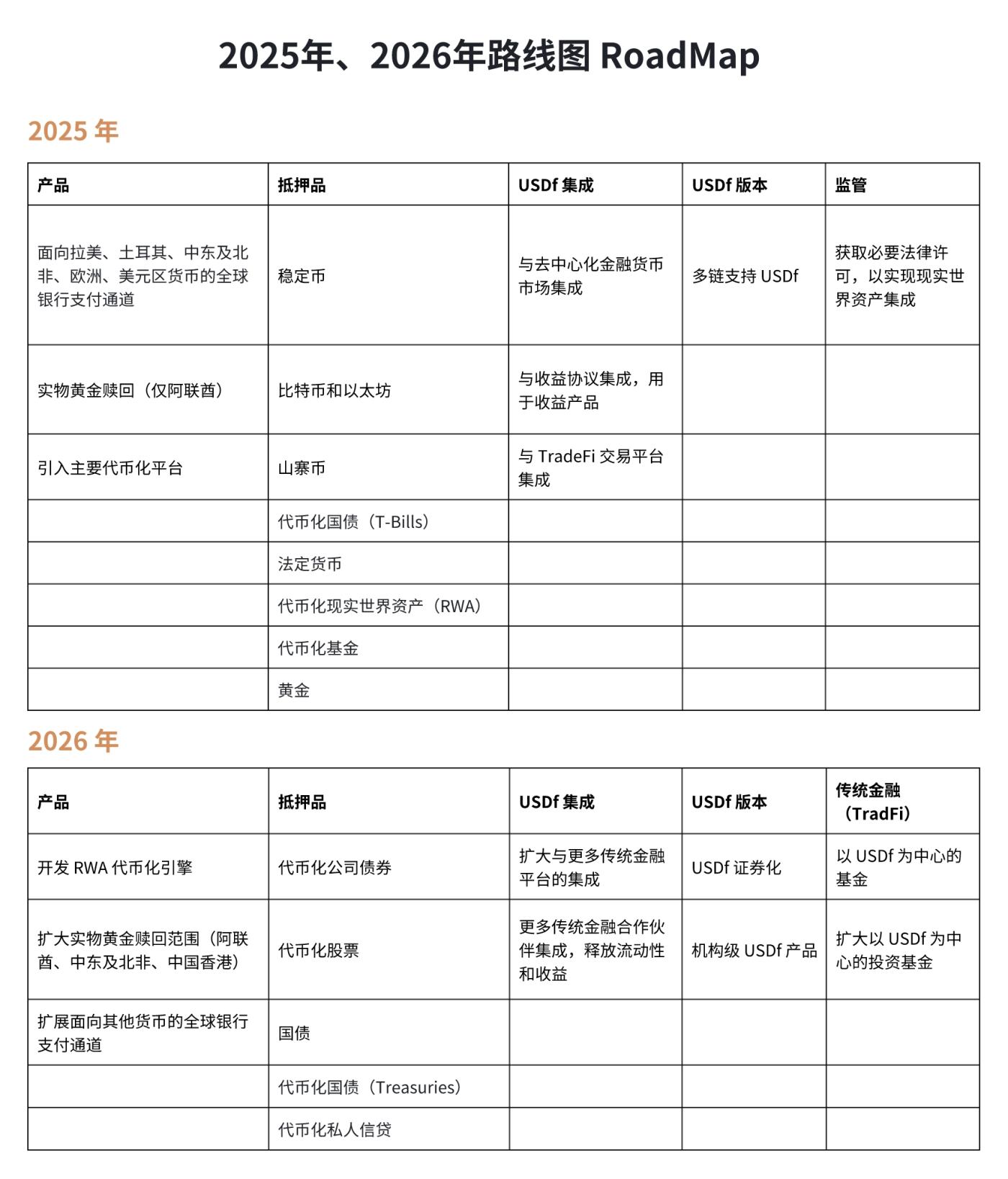 团队还在推进与持牌托管机构和支付机构合作,推出类似银行级的 USDf 产品,如资金隔夜收益管理和货币市场基金通道,并考虑在全球主要金融中心(如中东、香港等)增加实物黄金的链上兑换服务。到 2026 年,Falcon 计划构建「现实资产引擎」,支持公司债、私募信贷等资产代币化接入,并推出 USDf 投资工具和结构化证券产品,以适应更大规模的机构需求。