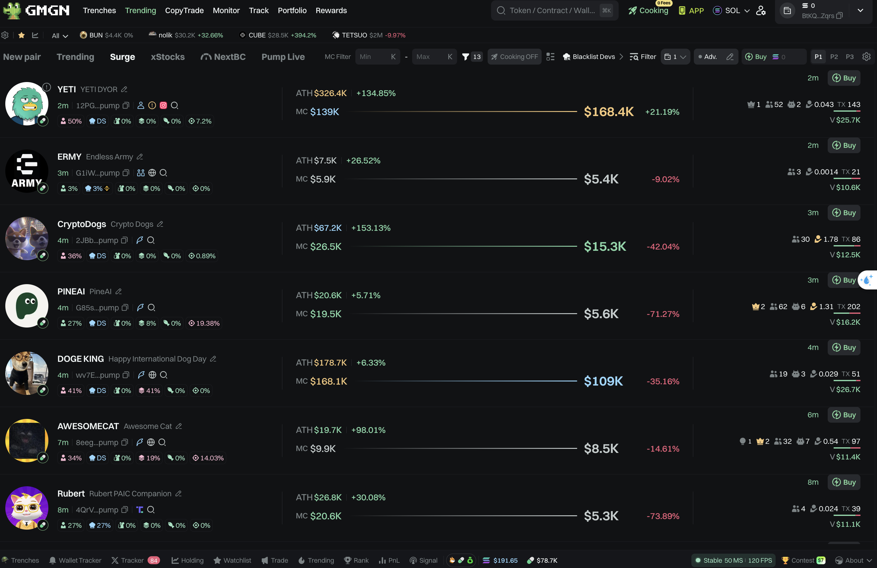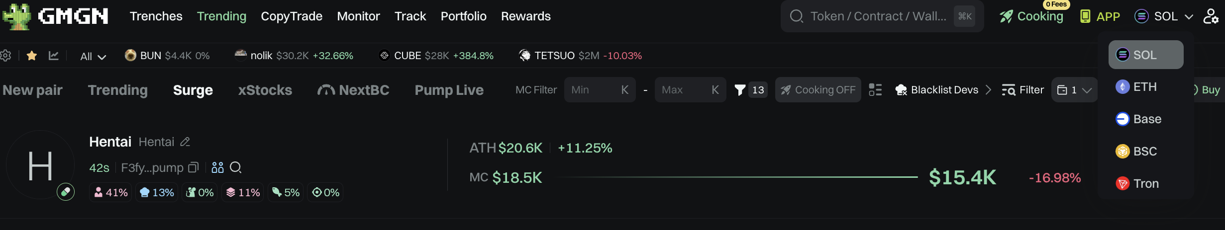 GMGN 让您可以实时监控顶级交易员的买卖活动,从而跟随他们的脚步。这对于学习策略的初学者或寻求新机会的专业人士来说都是理想之选 17。