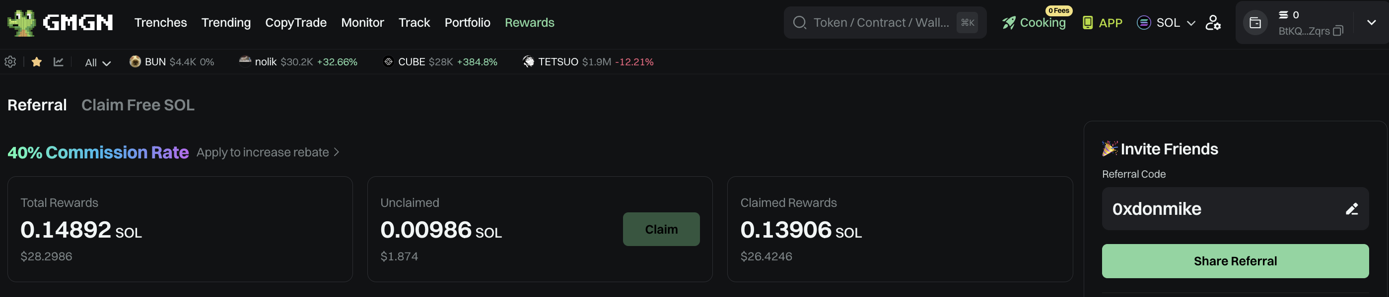 - 点击推荐链接: https://gmgn.ai/?ref= 0xdonmike。