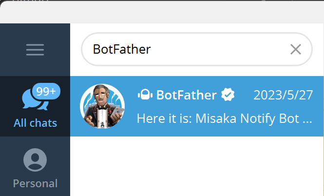 - 在 Telegram 中搜索 @BotFather 并开始聊天。