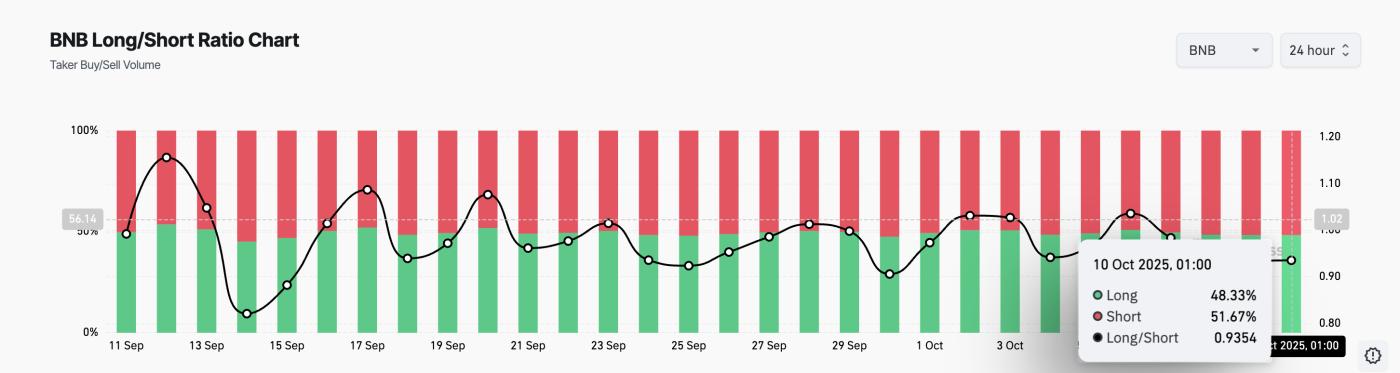 此外,自 2023 年 10 月 6 日以来,BNB做多/做空比率一直稳定在 1 以下,点击了期貨上涨的负面趋势。截至本文撰写时,该比率为 0.9354。