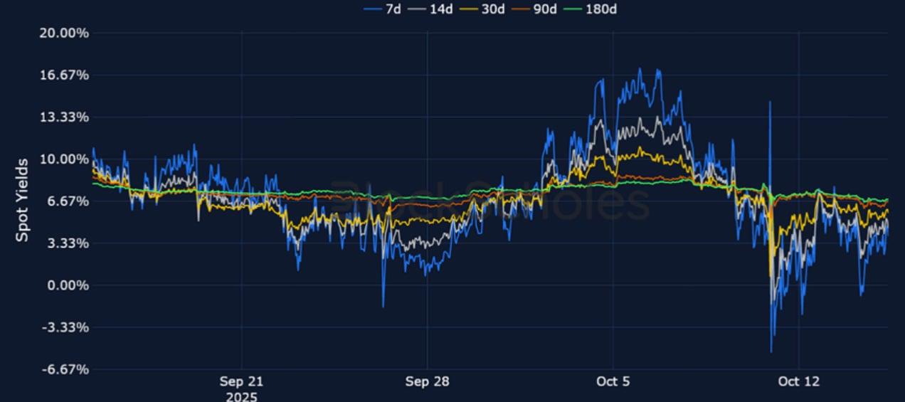 ETH期货隐含收益率——随着永续掉期合约融资利率的大幅下降,短期合约的期货收益率也大幅下降,因为 190 亿美元的头寸被清算。