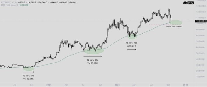 The good news is that $BTC has consistently put in a bottom around 3D 100 EMA this bullrun.