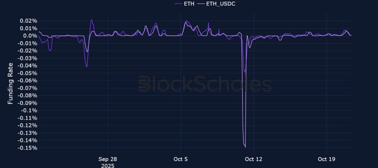 ETH融资利率——在现货价格在 3,700 美元至 4,200 美元之间波动的情况下, ETH融资利率仍维持在中性水平附近。