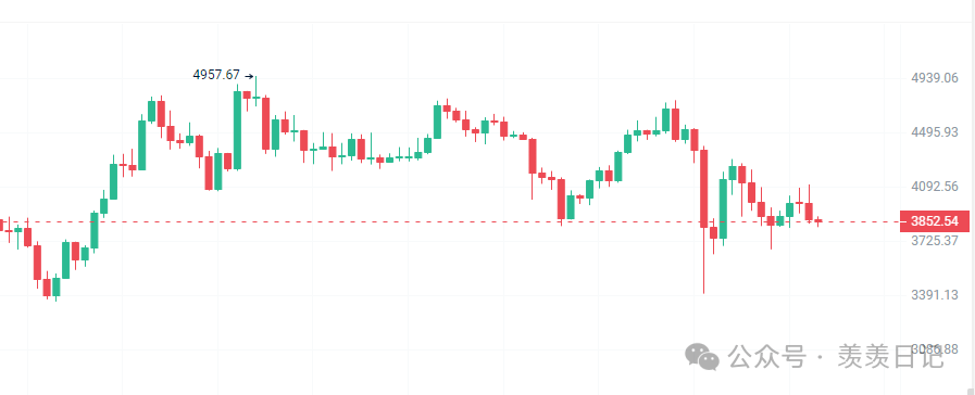 昨天原本预期 ETH 能反抽到 4150,结果它最高只到 4110,之后就跟着 BTC 一起回调了。从日线级别看,ETH 每次反弹都没创下新高,近期大概率还会继续往下调。今天我的计划是,在 3950 附近的位置做 ETH 的箜单。