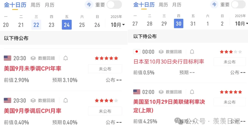 接下来的杭情走势,会被两件事影响:一个是 24 号美国要公布的 CPI 数据,另一个是 30 号召开的议息会议。