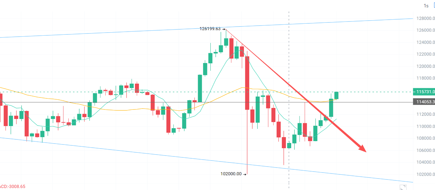 当前冲击116一线,若突破失败,关注回踩112-113区间支撑;若能稳在114上方,则有望再试1175附近。整体依旧偏强,别被小级别震荡吓出局。