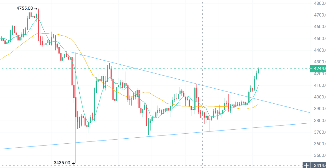 暴跌以来,四大金刚一直围绕三角区间收敛。