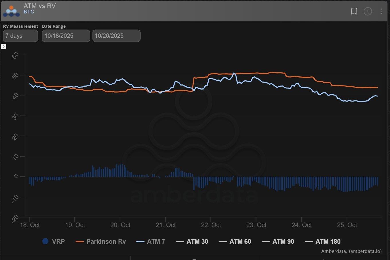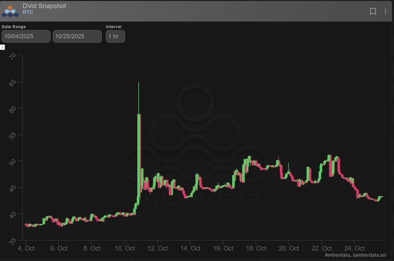 因此,在 10/10 之前的平静和 10/10 的大幅飙升之后,vol 的 vol(以 Dvol 为代表)已经更高了。