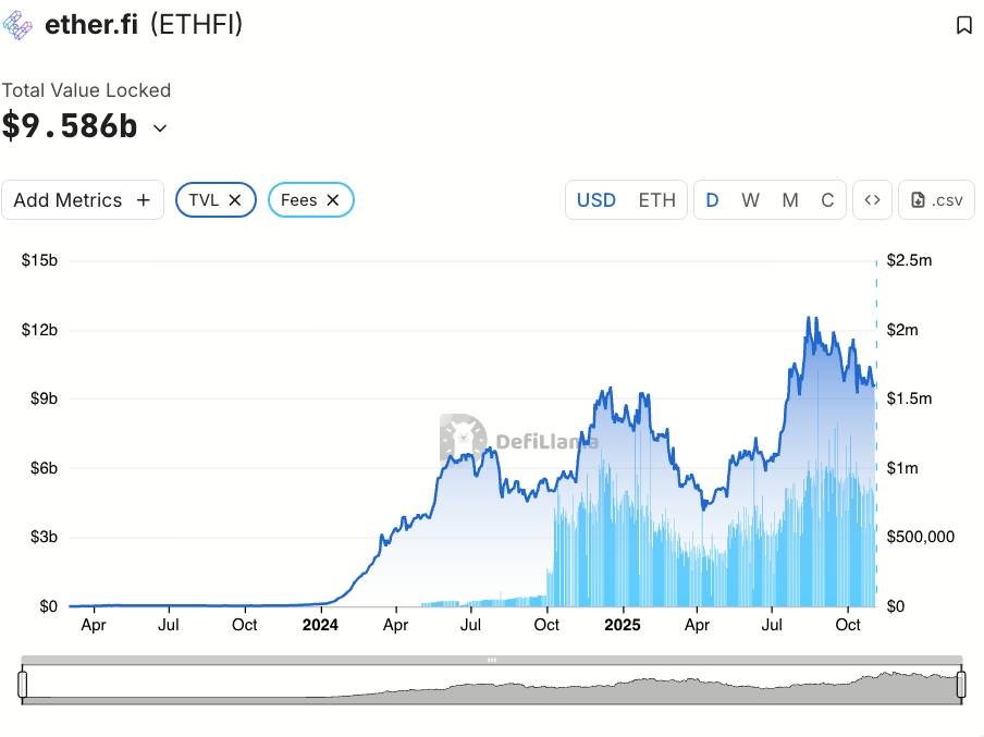 ether.fi TVL 统计数据。数据来源:DefiLIama(2025 年 11 月 3 日)