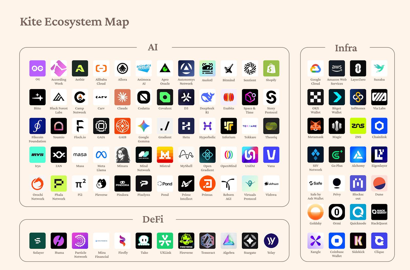 Kite 生态系统是一个由 100 多个 Web2 和 Web3 领域大小专案组成的协作网络,旨在成为智慧体网路的基础层,促使自动化人工智慧的发展。一些知名项目包括:0G Labs、Aethir、Allora Network、Solayer Labs、Huma Finance、Particle Network 等。