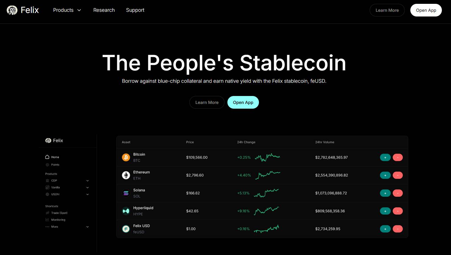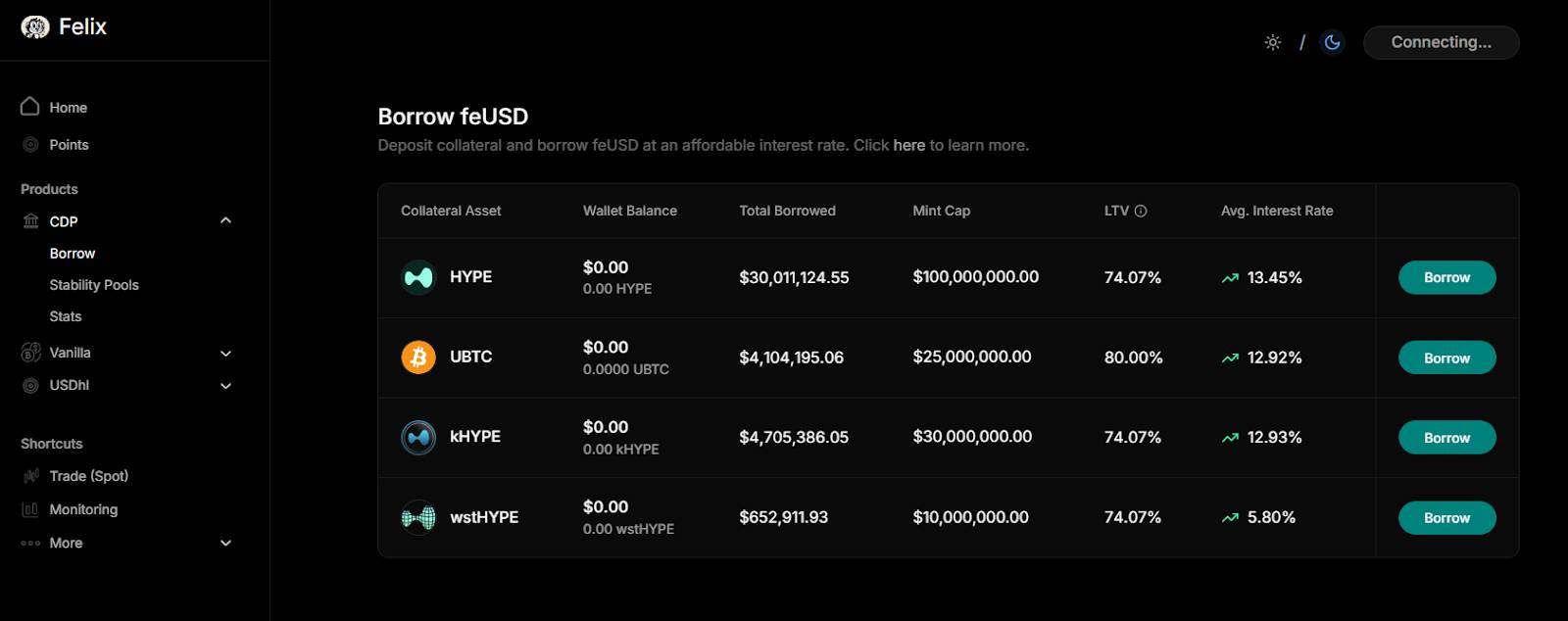 Felix Protocol 是 HyperEVM 上的一个货币市场平台,也是Hyperliquid生态系统的一部分,它允许用户借入、借出和发行稳定币,例如 FEUSD 和 USDHL。