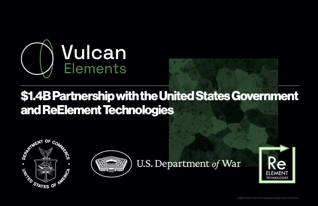 (3) Vulcan Elements与美国政府达成14亿美元的合作协议