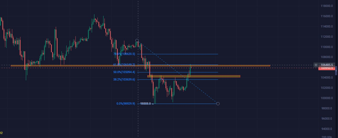 BTC 盘面反弹到了本轮下跌的 61.8% 回调位,这个位置同时也是关键的水平压力区。前几天选择在 10 万美元入场,核心原因是看好美国政府开门的预期,眼下这个利好正在逐步兑现。所以不用重仓,留部分仓位观望就好,等美国政府正式开门后,再看价格走势是否值得进一步操作。