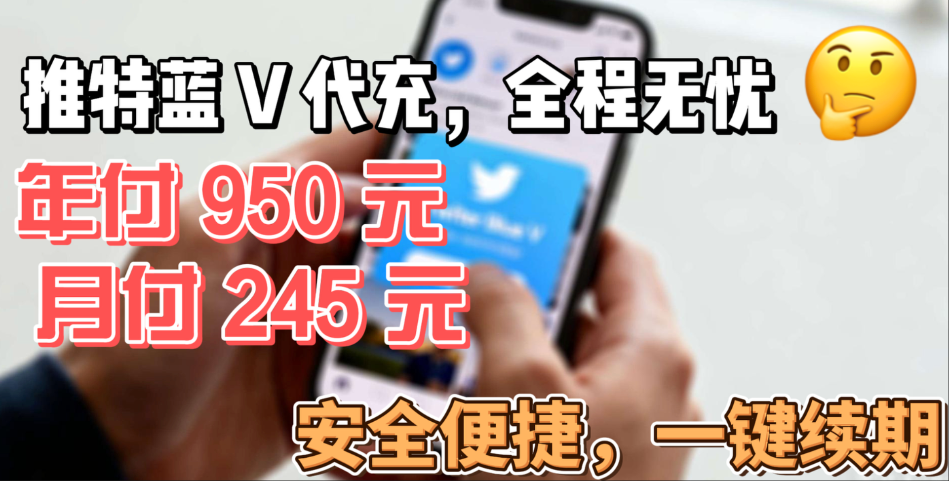 别再让支付难题成为您推特运营的绊脚石!推特会员代充服务,是您解决银行/卡风控、地区限制以及实现批量账号统一代充的唯一稳定选择。了解更多代充服务详情或获取批量报价,立即联系我们的专业客服团队!