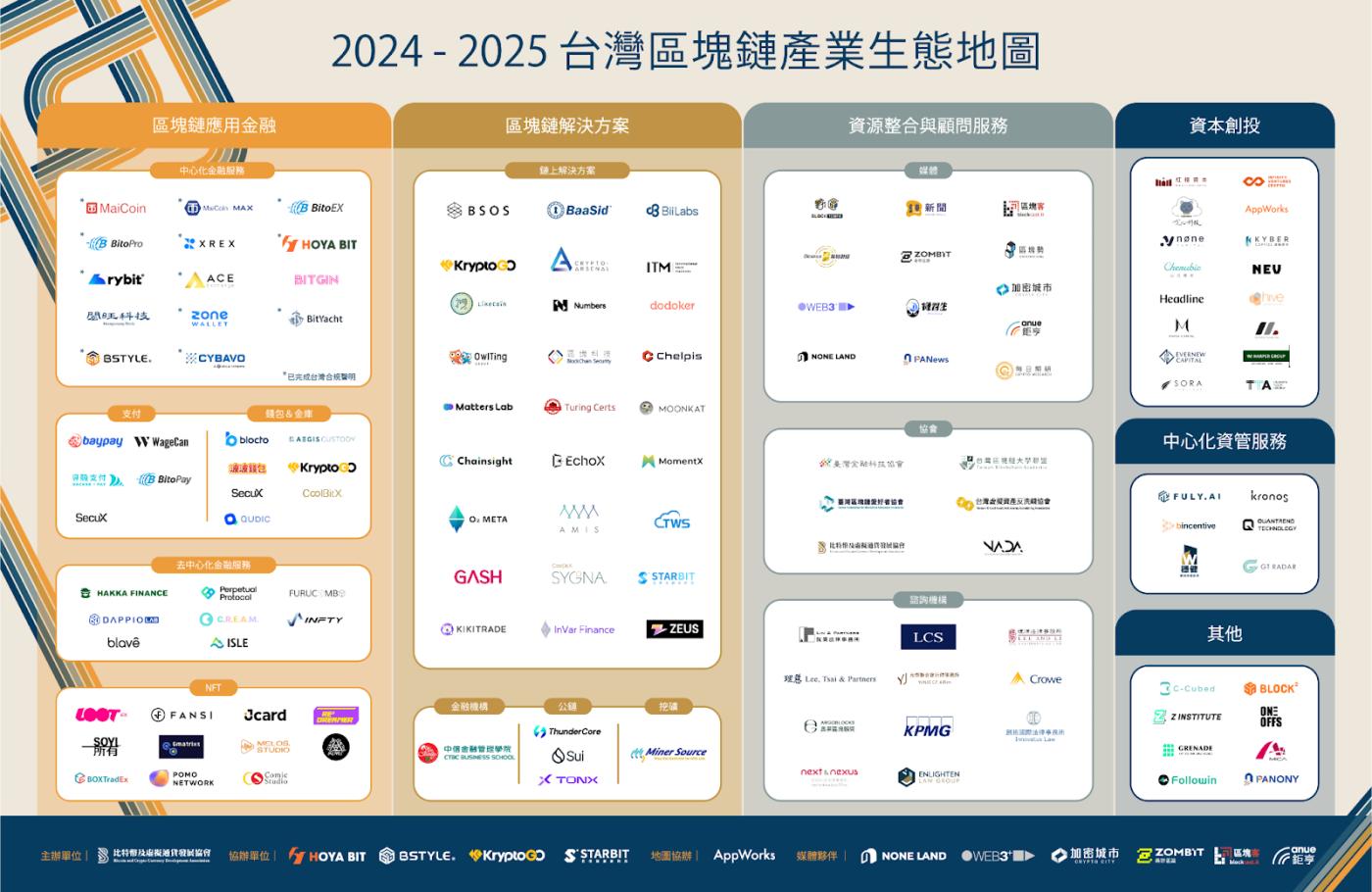 自2019-2021年,「台湾 Blockchain 生态系地图」(Taiwan’s Blockchain Ecosystem Map)承载了产业发展历程,以及不同赛道的变迁兴衰,并见证台湾团队站上国际舞台。这份历史传承,由比特币及虚拟资产发展协会(下称比特币协会)及产业伙伴接下火炬,并于去年发布2023 以及2024-2025年台湾区块链产业生态地图(https://map.bcda.tw/):