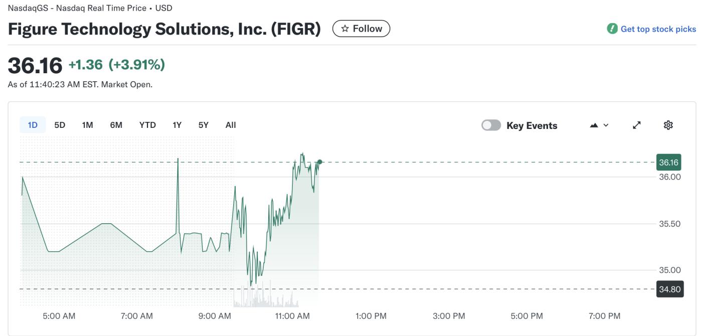 根据雅虎财经的数据,Figure的股价在周一早盘交易中上涨了近4%。